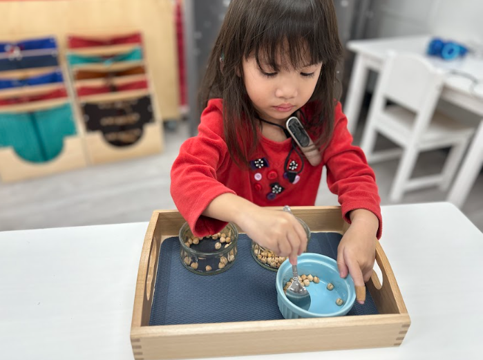 Children in their first-year spend a good amount of time in the Practical Life area, developing all the essential life skills, fine motor abilities and a sense of order to help cultivate independence, concentration, and confidence in their abilities. The Sensorial area is introduced to the children allowing them to refine their senses in preparation for later scientific discoveries!